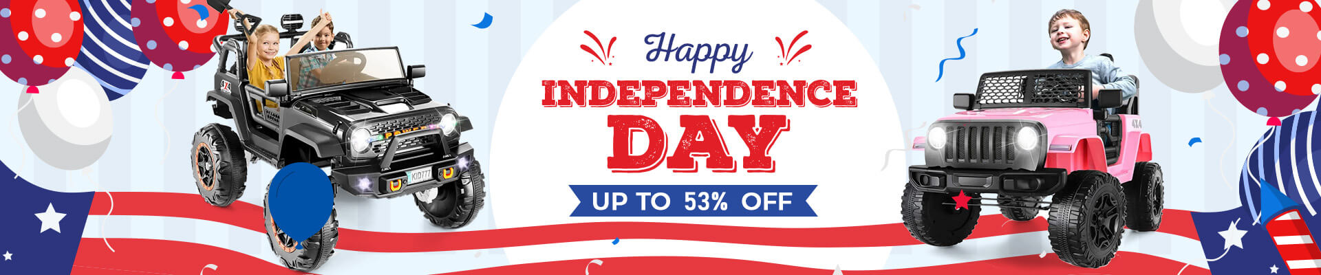 To make this Independence Day even more special, we're offering an exclusive offer on all our electric ride-on cars. Enjoy up to 53% OFF storewide now. This limited-time offer is our way of saying thank you for being a part of our community and celebrating with us.