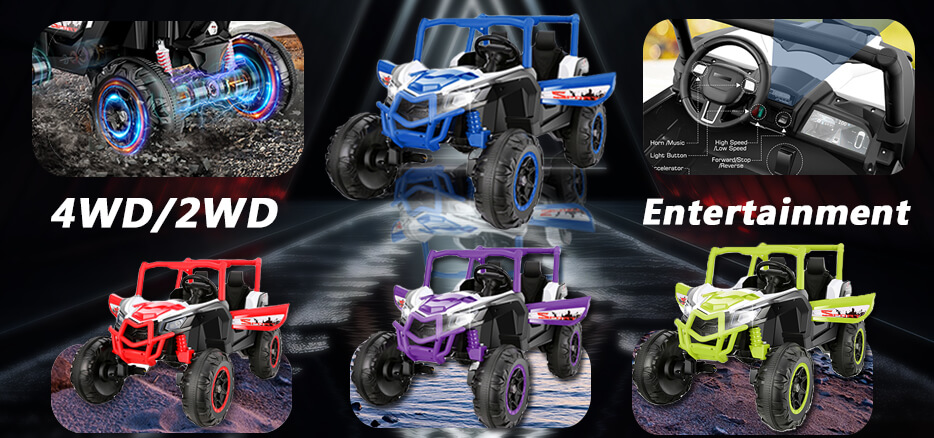 ③. Crafted for aged 3 to 8 years old, this UTV toy car boasts variable speeds ranging from 2.2 to 5.9 mph.
